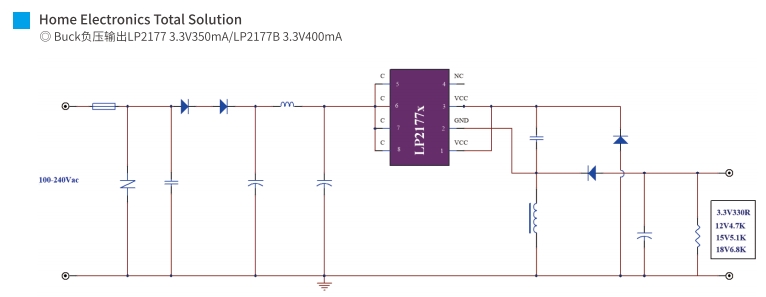 輸入電壓范圍:LP2177B支持85Vac至265Vac的全電壓輸入,使其在全球范圍內都能穩定工作。