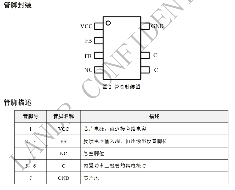 VCC:芯片電源,就近接旁路電容。 2, 3. FB:反饋電壓輸入端,恒壓輸出設置腳位。