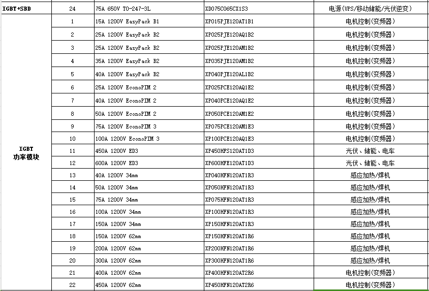 在現代工業自動化和能源效率要求日益增長的背景下,電機控制系統的性能成為了衡量工業設備優劣的重要標準。IGBT(絕緣柵雙極型晶體管)模塊作為電機控制核心組件之一,其性能直接影響到電機的效率和可靠性。本文將詳細介紹25A 1200V IGBT模塊,包括XP025PJE120AQ1B2、XP025PJE120AM1B2和XP025PCE120AQ1E2型號,探討它們在電機控制領域的應用和優勢。