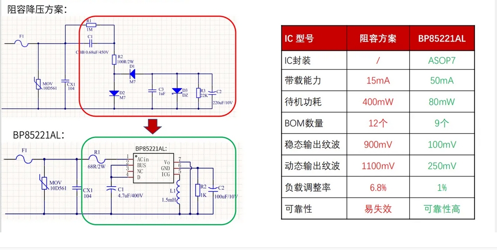BP85221AL如何完美替代阻容降壓芯片?(升級電源設計)