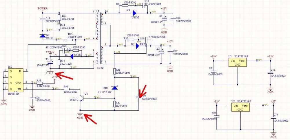 變壓器 T1:實現電壓轉換和電氣隔離,其多繞組結構能夠同時提供多個獨立的輸出電壓。
