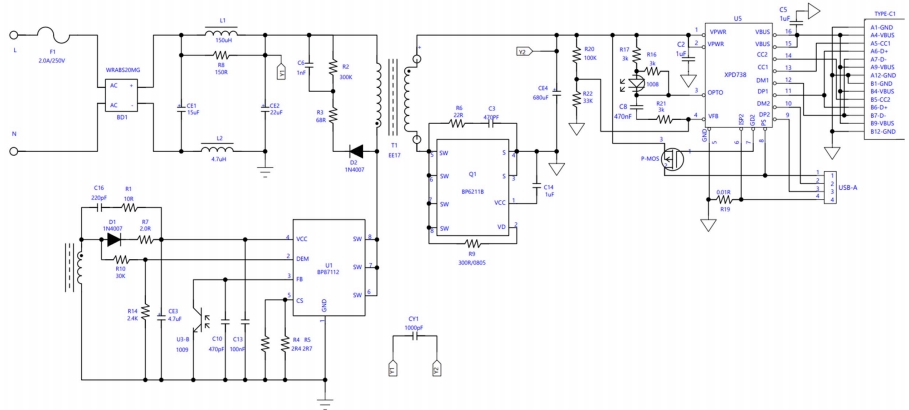 在當(dāng)今快速發(fā)展的電子設(shè)備市場中,電源適配器的性能和效率對于設(shè)備的穩(wěn)定運(yùn)行至關(guān)重要。隨著USB-C接口和USB-PD協(xié)議的廣泛應(yīng)用,市場對高性能、高效率的電源適配器的需求日益增加。本文將詳細(xì)介紹基于BP87112和BP6211B芯片的20W A+C電源適配器參考設(shè)計,該設(shè)計支持12V/1.67A、9V/2.22A和5V/3A的輸出規(guī)格,旨在為用戶提供一個高效、可靠的電源解決方案。
