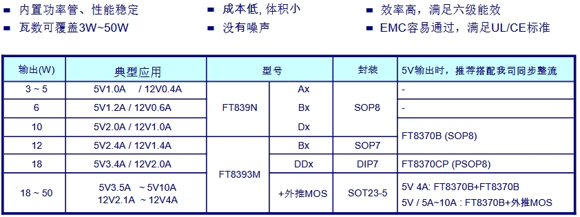 FT839xx/FT8393xx系列芯片是專為滿足DoE(美國能源部)和CoC(歐洲協(xié)調(diào)委員會)六級能效標(biāo)準(zhǔn)而設(shè)計的AC-DC恒壓恒流芯片。該系列芯片內(nèi)置功率管,具備性能穩(wěn)定、成本低、體積小、效率高等特點,能夠覆蓋3W~50W的瓦數(shù)范圍,廣泛適用于各種電子設(shè)備的充電器和適配器設(shè)計。