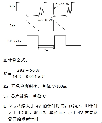 關(guān)斷條件:同步整流一旦開通,在比較器屏蔽時間 Tb 內(nèi)不進(jìn)行關(guān)斷動作。當(dāng) Ton>Tb&The Vds voltage >-5mV,關(guān)斷同步。