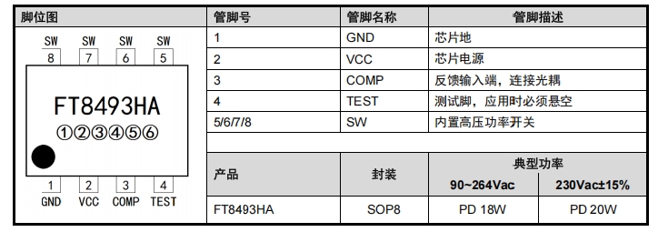 FT8493HA輝芒微SOP8封裝PD20W次邊反饋開關電源轉(zhuǎn)換器芯片