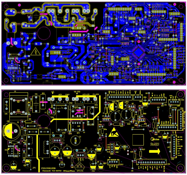 在布線方面,電源輸入端和輸出端的走線盡量加粗,以降低線路阻抗,減少電壓降。同時,高頻信號線和敏感信號線之間保持足夠的間距,避免信號干擾。此外,PCB還設(shè)置了足夠的接地平面,以提高電源的抗干擾能力。