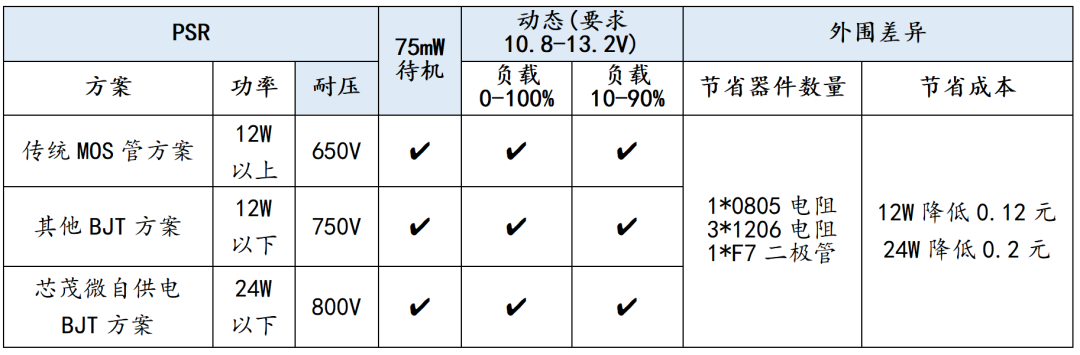 下面附上芯茂微新型自供電BJT方案產(chǎn)品型號列表: