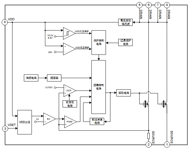 | 過(guò)流保護(hù)(OCP) | 逐周期限流 | 固定閾值 |