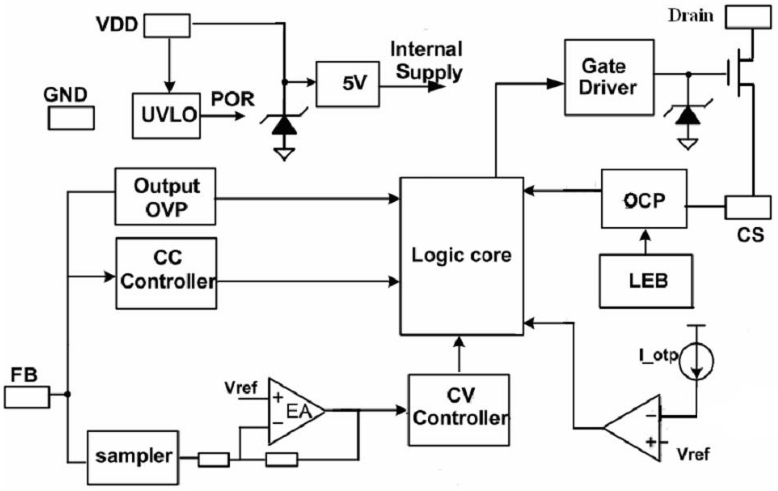 高集成度:芯片內部集成了高壓功率MOSFET和原邊控制模塊,減少了外部元件數量,簡化了電源設計。