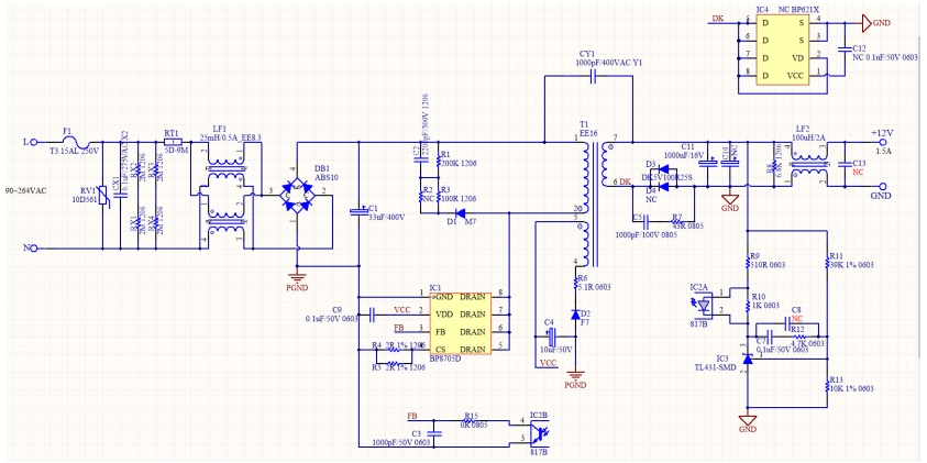 在現(xiàn)代電子設(shè)備中,穩(wěn)定的電源供應(yīng)是確保設(shè)備正常運(yùn)行的關(guān)鍵因素之一。BP8705D作為一款高性能的電源管理芯片,以其高效、穩(wěn)定的特性在眾多電源方案中脫穎而出。本文將詳細(xì)解析基于BP8705D的12V/1.5A電源方案,涵蓋電路原理圖、實(shí)物圖、變壓器規(guī)格以及PCB設(shè)計(jì)等內(nèi)容,幫助讀者全面了解該方案的設(shè)計(jì)細(xì)節(jié)和優(yōu)勢。