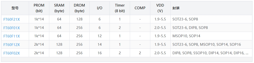 例如:FT60F21X ? FT60E21X,只是 DROM 擦寫壽命從 100 k 提升到 1 000 k,價格貴 3~5 分錢。