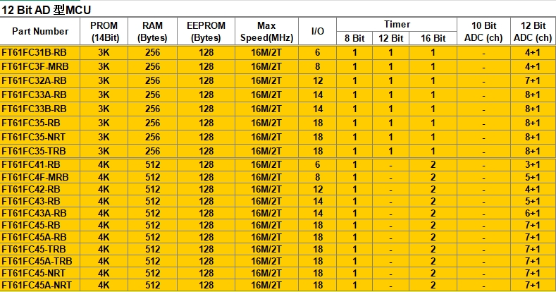 └─ 10 K Flash:FT61F0A5/FT64F0A5 —— 大資源算法