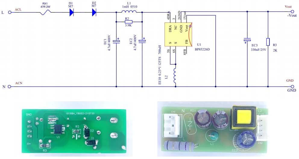 BP85226D是一款高性能、高集成度、低待機功耗的AC-DC開關(guān)電源芯片,適用于全電85~265VAC輸入的Buck、Buck-Boost變換器拓撲應(yīng)用,SOP-7封裝,內(nèi)部集成了650V高壓MOSFET,高壓啟動和自供電電路、電流采樣電路、電壓反饋電路以及續(xù)流二極管,采用先進的控制技術(shù),無需外部VCC電容和環(huán)路補償,即可實現(xiàn)優(yōu)異的恒壓輸出特性,適用于電飯煲,空氣炸鍋,智能門鈴/插座等小家電。