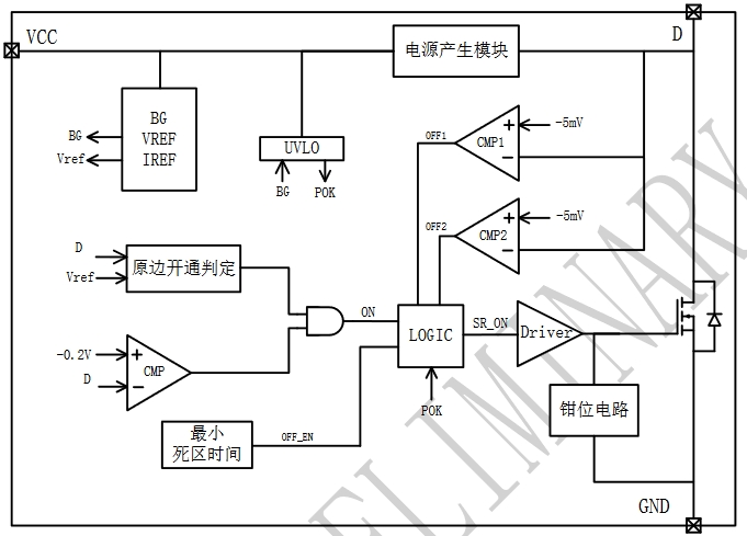 LP10R100S是由芯茂微電子推出的一款適用于A(yíng)C-DC同步整流應(yīng)用的芯片,特別適用于正激和反激系統(tǒng)。這款芯片支持多種工作模式,包括DCM(斷續(xù)導(dǎo)通模式)、BCM(邊界導(dǎo)通模式)、QR(準(zhǔn)諧振模式)和CCM(連續(xù)導(dǎo)通模式)。LP10R100S內(nèi)部框架圖如下: