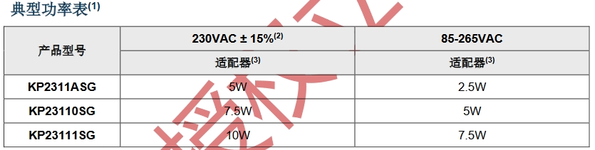 KP2311ASG:這款芯片設(shè)計(jì)用于5W的輸出功率,在230VAC ± 15%的條件下,能夠提供2.5W的功率。它適用于需要較低功率輸出的應(yīng)用,如小型充電器。