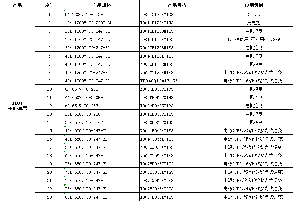 國產IGBT芯達茂XD040Q120AY1S3,IBGT+FRD單管40A 1200V TO-247-3L