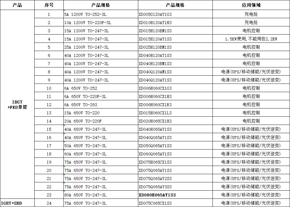 80H065AY1S3芯達茂IBGT +FRD單管 80A 650V TO-247-3L ,應用:電源(UPS/移動儲能/光伏逆變)