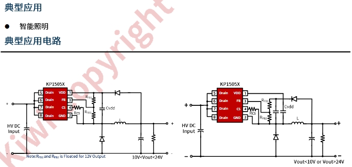 默認(rèn)12V輸出:當(dāng)FB腳懸空時(shí),KP15052SPA默認(rèn)輸出12V電壓。